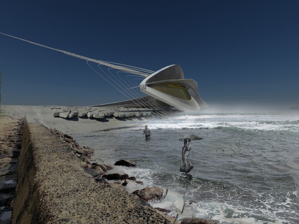 Margot Krasojević’s new conceptual work is a sculpture gallery on the coast of Sochi, Russia, using hydroelectricity: the structure would work with sea and waves to produce power for 200 homes. The architect, known for her conceptual architecture and environment awareness, was inspired by the Russian constructivism movement.