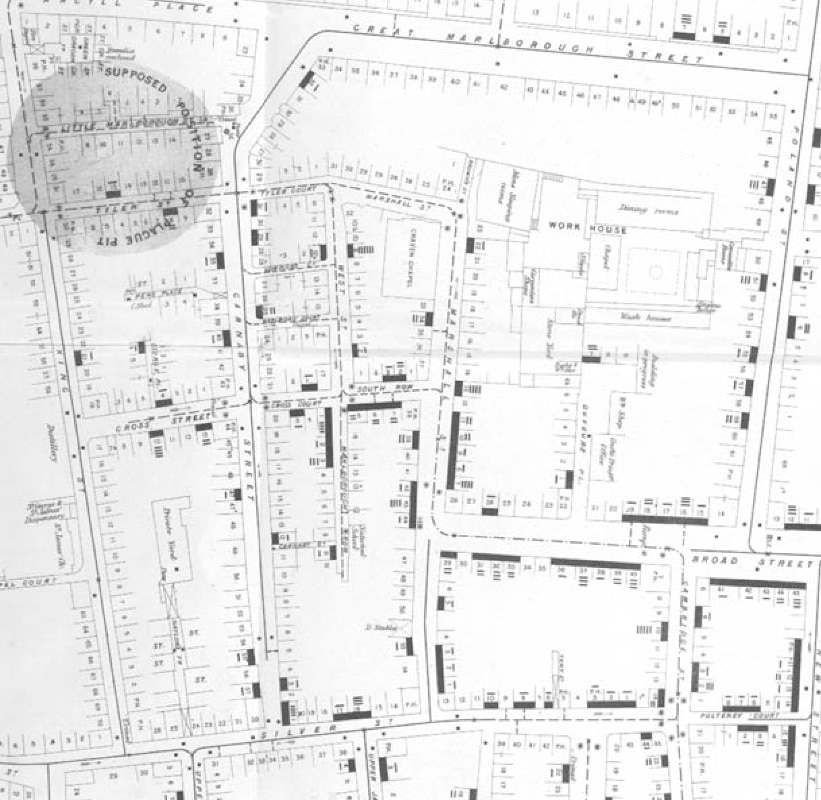 The Metropolitan Commission of Sewers also wanted more details about what had happened, and sent engineer Edward Cooper to inquire whether the sewer works that had been carried out in the neighborhood at that time had somehow released "noxious gases" from an ancient pit where many bodies had been buried during the plague of 1665. And what did Cooper do? He brought along a map of Soho and marked the locations of the homes of those who had died.