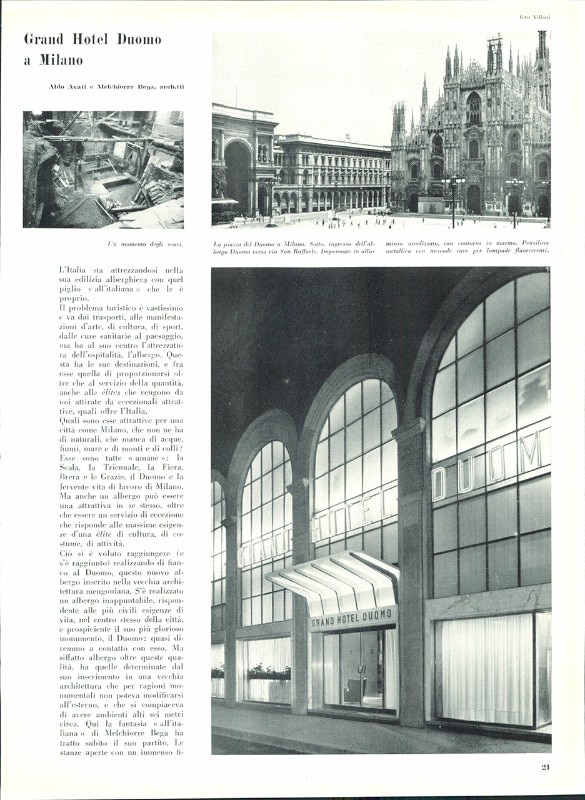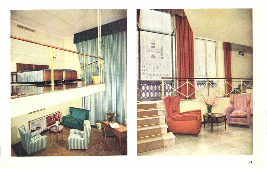 Interiors of Grand Hotel Duomo designed by Aldo Avati and Melchiorre Bega, from Domus 250, September 1950.