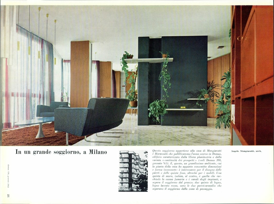 Angelo Mangiarotti and Bruno Morassutti, interior of an apartment in via Quadronno, from Domus 410, January 1964.