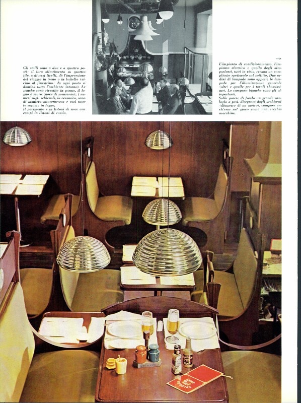 SPLÜGEN BRÄU brewery in Corso Europa 12, designed by Achille and Pier Giacomo Castiglioni, from Domus 380, July 1961.