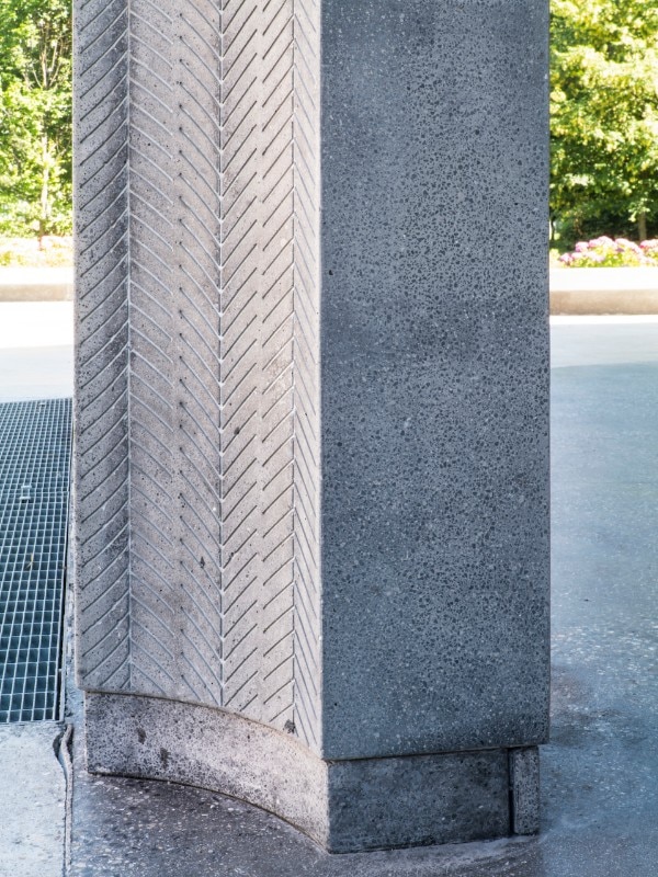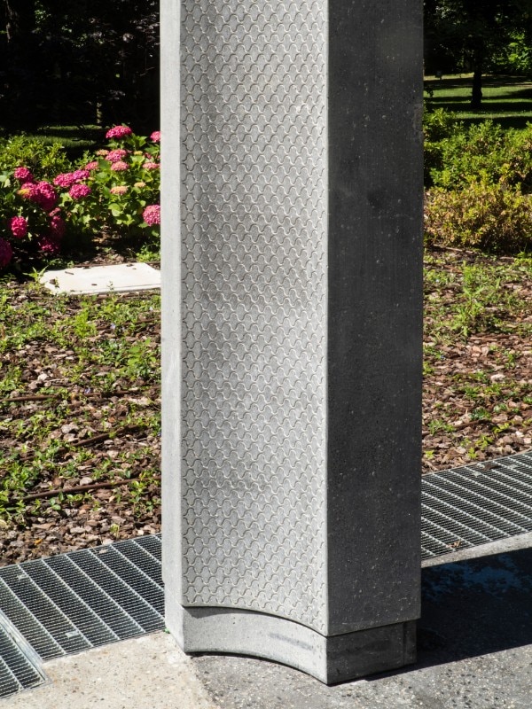 The seat consists of a horizontal element in polished Montorfano granite and vertical supports without side overhangs in serizzo bush-hammered glands. It is used in the ancient formation areas and in special cases such as in Bicocca area.