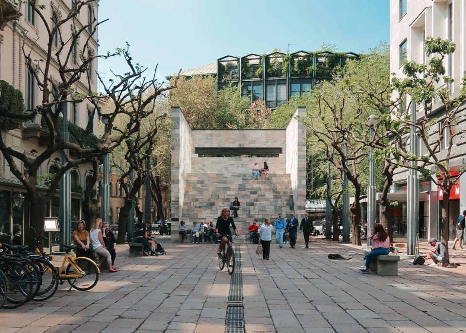 Piazza del Liberty is excavated and transformed into a large urban amphitheatre overlooking a fountain. Open 24 hours a day, it becomes a space for the city, a venue for events and film screenings.