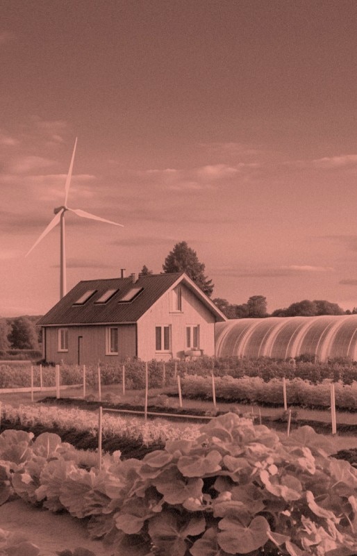 The third and final scenario starts with the question: “How might our relationship with technology and nature allow us to live with a more regenerative mindset?”. Jamie, an elementary school teacher who identifies as queer, lives with two partners in a town north of Uppsala, Sweden. To lighten domestic management work, kitchen surfaces and all floors are self-cleaning. Meal and grocery planning are entrusted to a cloud. Every day, Jamie downloads a report from Gaia, the house's internal AI system that monitors energy usage and overall well-being. Analyzing weather and health forecast data, Gaia provides various advice, such as turning on the house's turbines to harness wind energy or playing music to manage anxiety peaks effectively. The family 3D prints their furniture using a mushroom compound as material and, when unable to move, spends time with friends and relatives during virtual Sunday lunches and online meetings for children. But Jamie also likes to distance from technology by working on the adjacent land, reconnecting with the earth.