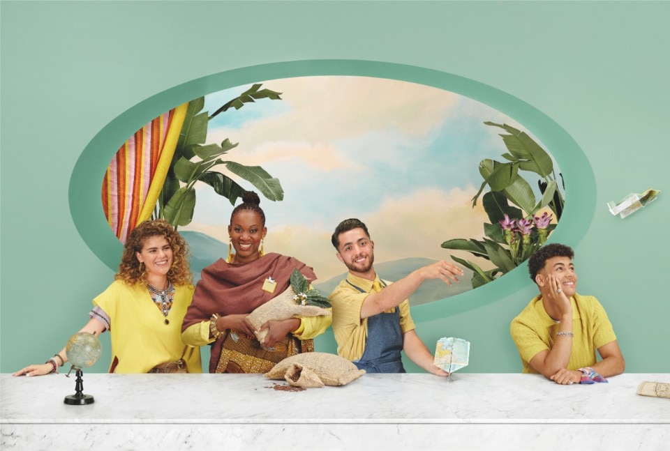 The calendar is divided into four quarters, corresponding to the seasons and each with a unique color palette, representing four interpretations of the blend concept: from coffee blends to cultural, professional, generational, and geographic mixtures. “I wanted to translate the aesthetics of my previous works into the world of Italian breakfast bars, with spaces open to all,” Diop tells Domus. “I’ve always been fascinated by how bar counters play a central role in the social life of every community, especially in Italy. I was fortunate to work with a very diverse cast, which made a big difference.”