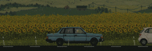 Beyond its clever and fitting choice to use RPG mechanics to structure the narrative—with all its challenges, encounters, and surprises—there are at least two elements that make Keep Driving one of the most interesting titles to come out in early 2025. First, there’s the pixel art aesthetic. It may be close to a cliché by now, but in this case, it’s not just a nostalgic nod to retro games—it evokes a fictional time more than a real one. A kind of “pre-HD” mythology that smells like asphalt, gasoline, and nights spent sleeping in the back seat with stars shining through the windshield.