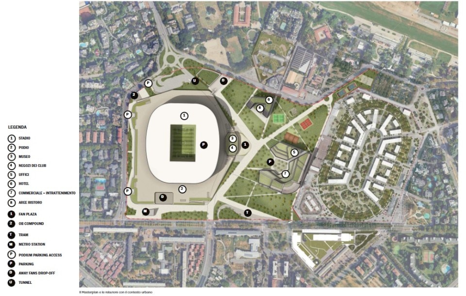 However, the plan, which we remind you is still only preliminary and subject to considerable change, also provides for the preservation of Tower 11 and part of the spiral ramps of the second ring (east side). The aim is to preserve these elements as the historical memory of the "Scala del Calcio", where a museum is to be created.