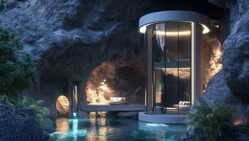 In Central Europe, the Oppidum in the Czech Republic is among the most radical attempts to transform the underground into high-end residential architecture. Originally conceived as a Soviet-era security structure, today it is an underground palace with a surprisingly rich spatial articulation: suites shaped according to the grammar of luxury hospitality, an interior garden with a calibrated light cycle, and scenographic rooms with digital “windows” simulating impossible horizons.
