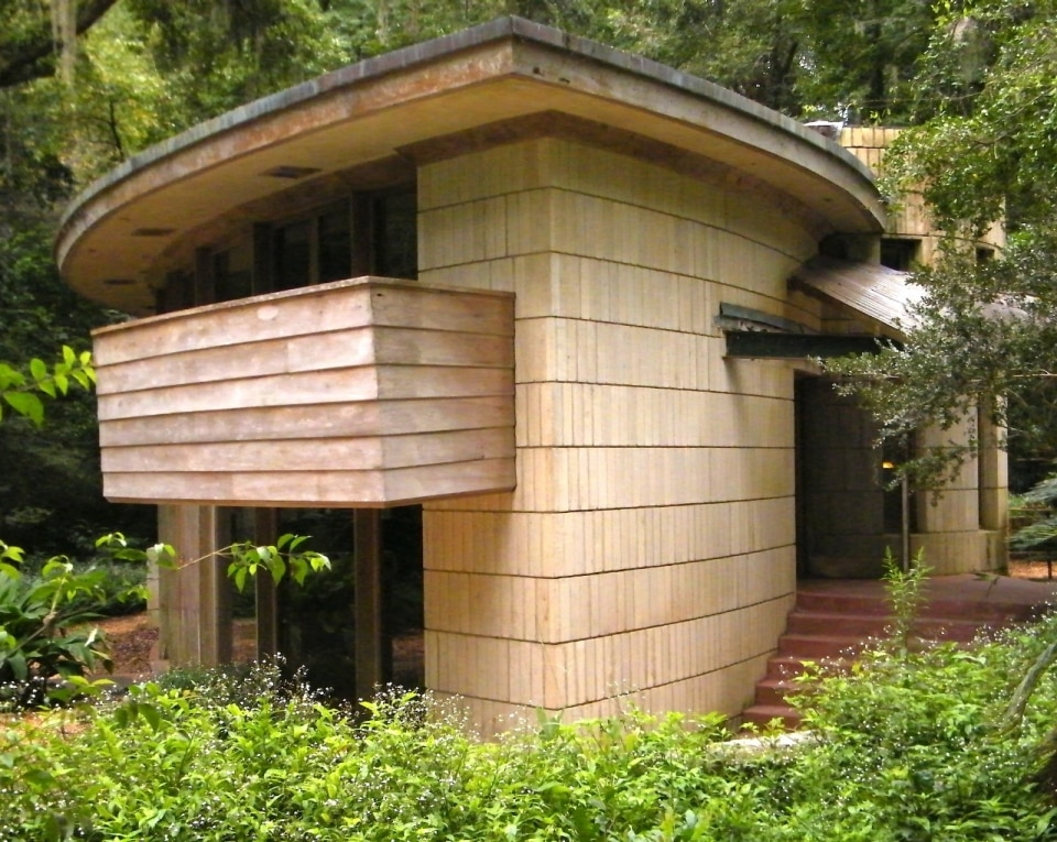 Not everyone knows that, at a certain point in his very long career, Frank Lloyd Wright stopped designing Usonian houses — horizontally developed buildings with perpendicular lines and pitched roofs — and began to conceive villas with circular forms, each time interpreted differently according to the client and the relationship with the surrounding landscape. Such is the case of the Spring House, located on the outskirts of Tallahassee, Wright’s only residential project in Florida.