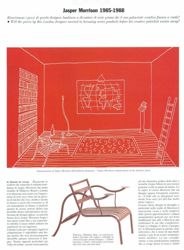 For nearly 39 years, the Italian company Cappellini—today led by Giulio Cappellini—has been the tireless ally of Morrison’s prolific design activity. This is no coincidence: between the late 1980s and the 1990s, the Lombard brand became one of the leading laboratories of international design, capable of hosting very diverse creators and transforming their ideas into objects destined to circulate worldwide. Its catalog includes many of the designer's furnishings, alongside those of illustrious colleagues such as Shiro Kuramata, Alessandro Mendini - whose famous Proust armchair the company produces -, Marc Newson, Nendo and many others.
