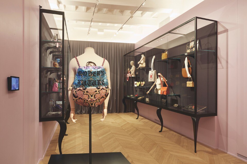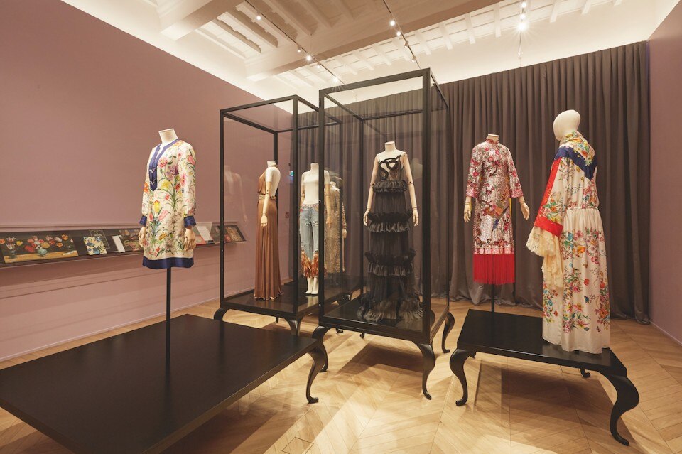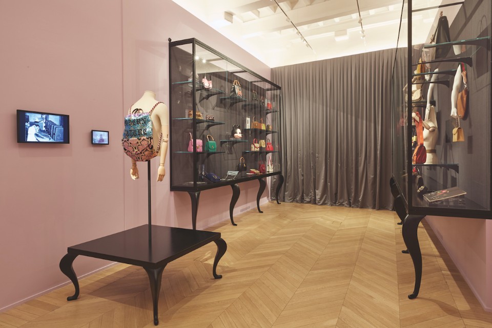 The new set up in the Gucci Garden by Maria Luisa Frisa instead presents an interweaving of various narratives in a multitude of languages. Détournement, Bagology, Ouroboros, Cosmorama are the titles of the halls that house the exhibition. Through a circular narrative that decontextualises the linear nature of time, the letters of the Gucci alphabet create new words. Maria Luisa Frisa states that it is a “venue that is both pop and scientific”, in which the bodies of the past, from the archives of the brand, encounter new stories and become new characters. The obsession with text and words is also present in the small Cinema da Camera, a small auditorium in the Gucci Garden. Here, in the darkness of the venue, image and body disappear, leaving space to the voice of John Giorno presenting a complete performance.