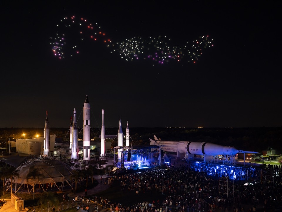 Studio Drift has celebrated NASA’s Apollo11 50th anniversary with Franchise Freedom, an art performance that involves 300 luminous drones having its debut in Miami during Art Basel 2017. The show took place in the sky, above Kennedy Space Center’s rocket garden, a perfect location in the US to remember the historical landing on the Moon in 1969. Drones’ patterns in the air, inspired by starling birds’ flight, have been accompanied by Duran Duran’s music, creating an immersive experience. Ralph Rauta, Studio Drift artist, declared about the performance: “Tonight we flew our artwork in front of the full moon. It felt like we were bringing some Space travel history back to earth”.
