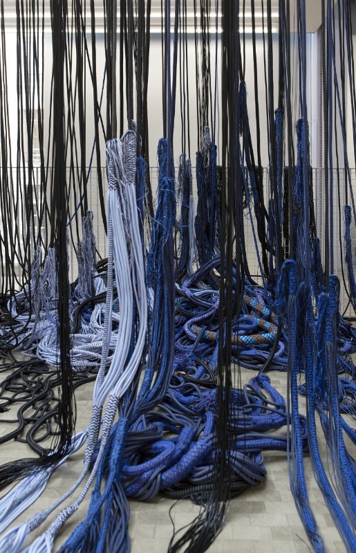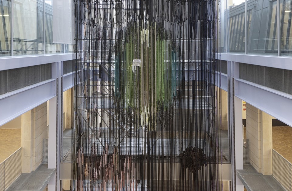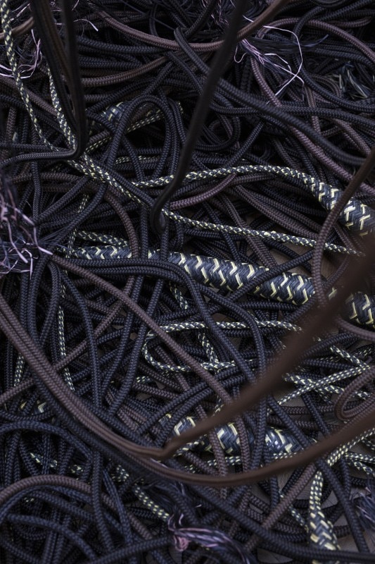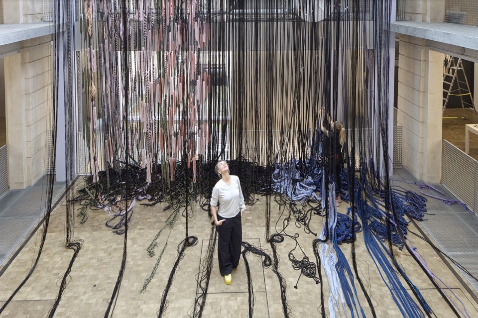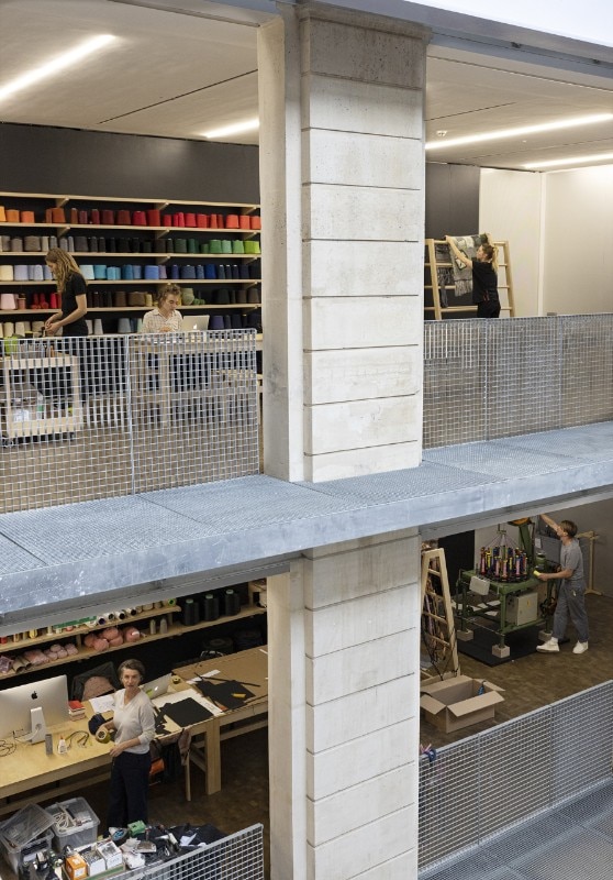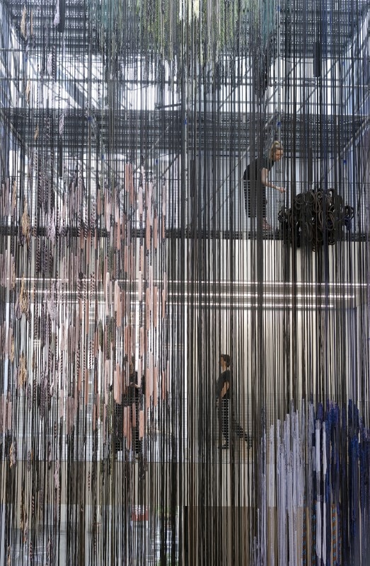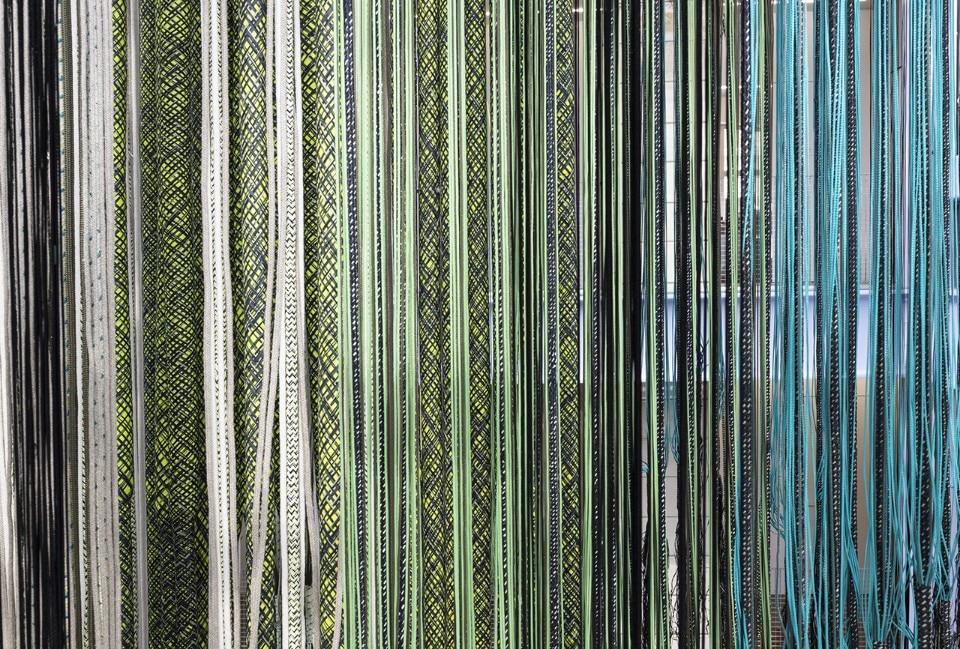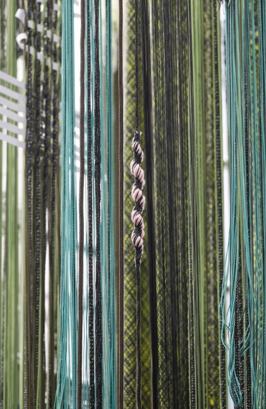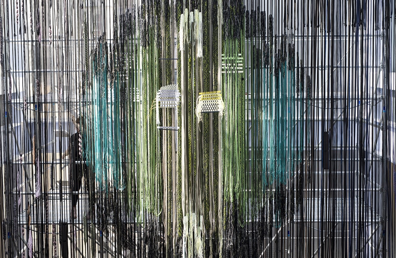 The latest design by Jongeriuslab for Lafayette Anticipations is no exception, and ends up transforming display into a lab. At the centre of the scene is the textile production process: a theme dear to the Dutch designer, dating to her university years, poised between craftsmanship and industrial production. “Interlace” challenges the cultural, social and economic implications of textile production and consumption at a time when there are fewer artisans and more disposable products.