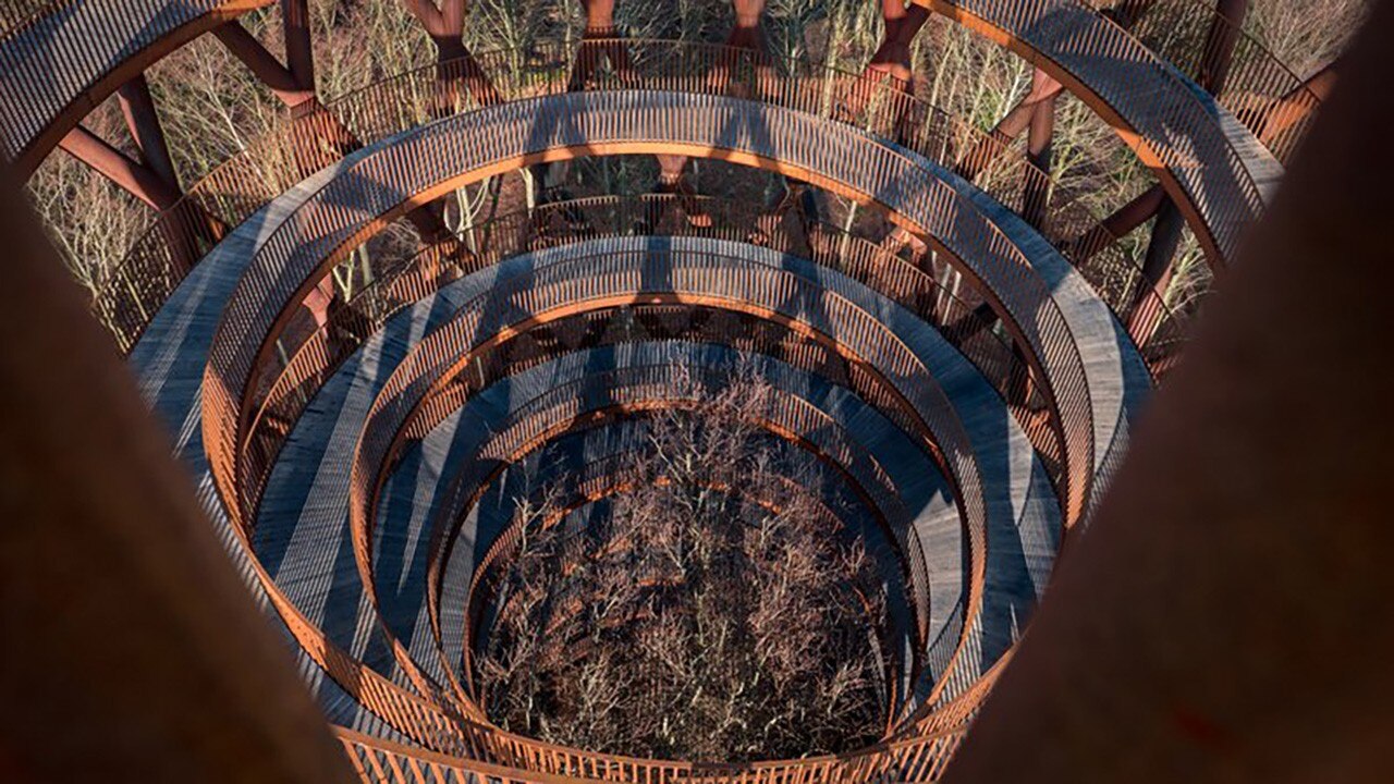 Effekt’s Corten and timber walkway spirals above tree canopy