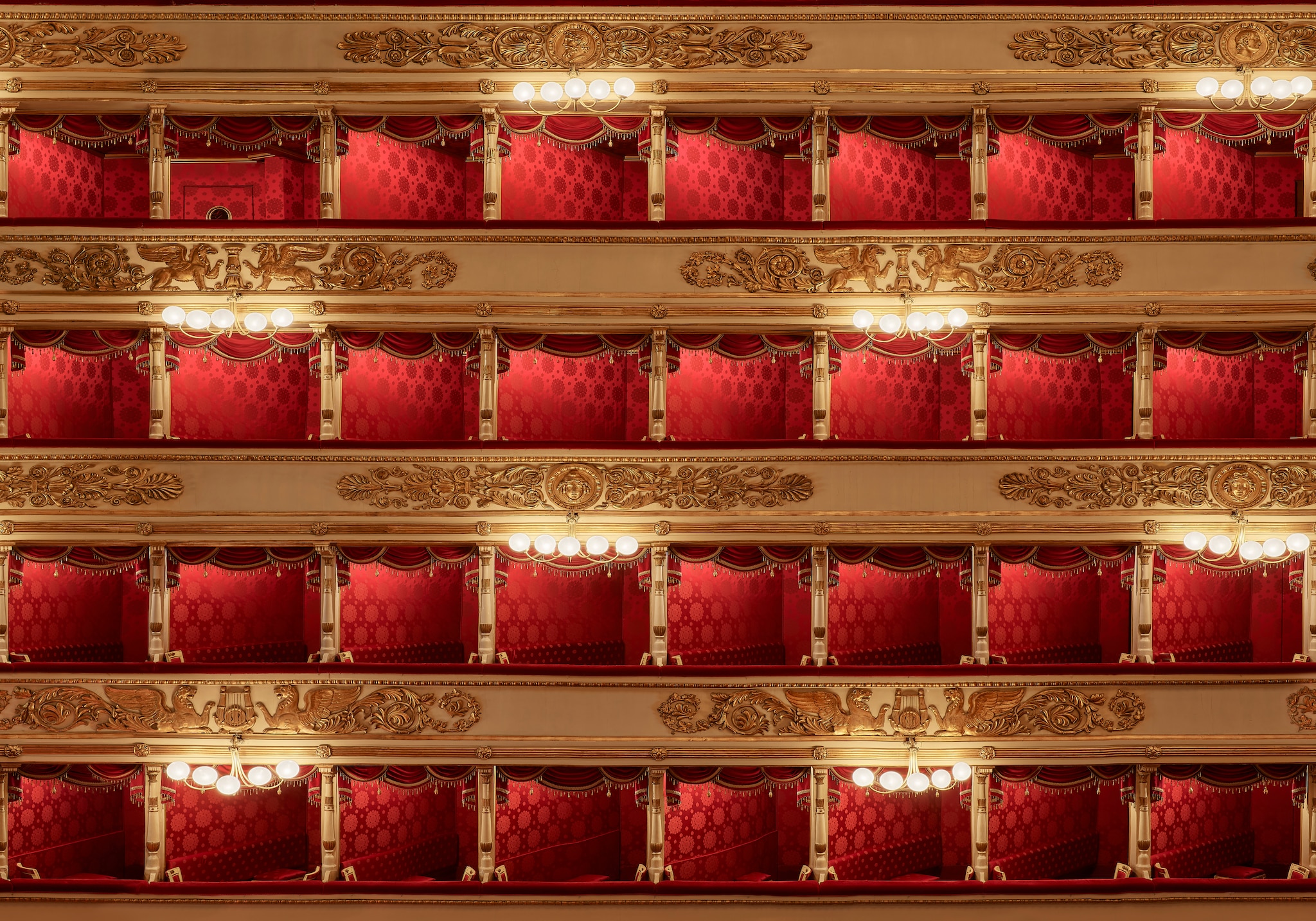After “La Magnifica Fabbrica”, which revolved around the architectural evolution from Piermarini’s project to Botta’s redevelopment, the celebrated Milanese teater rightly grandstands again with “Nei palchi della Scala”, an exhibition curated by Pier Luigi Pizzi focusing on its social history, that in many respects matches the one of the city itself. It’s in the boxes that, in fact, an undercurrent narrative of La Scala unfolds, because it’s here that one came, and still come, not just to see but to be seen as well. Thanks to the ad-hoc images that Fondazione La Scala asked him to take, Giovanni Hänninen shines a light on a no less secondary scene, letting the boxes become the stage of a rather unexpected representation. The photographs on display could be described as empty, but are actually never hollow, since they depict a vivid presence both from a decorative and an evocative point of view. Solid spaces are reflected in this game of mirrors, where the activity is suggested by a rigorous vision that in turn becomes the scenery to a potential opera. The invisible protagonists of this stage play are some of the most renowed Milanese families, box owners or guests with high-flown or famous names as Trivulzio, Litta, Visconti, Porro Lambertenghi, Confalonieri, Pellico, Stendhal, Foscolo, Parini or Manzoni. Printed in large format — as to give the impression of actually being in the boxes — the images are the intimate yet grand culmination of a new investment, both economic and cultural, by La Scala: the exhibition is in fact another tile in a more complex and ever changing designed plan which, starting with the purchase of lot in via Verdi to build a new Tower by Mario Botta (that will accomodate offices, practice rooms and the historic archive, and will allow the stage to be even bigger), and passing by the upgrade of the boxes to the new standards of acoustic studies, will end with the moving/merging of the laboratories and the warehouses, now located in two different areas of the city. It’s worth underlining that “Nei palchi della Scala” is part of a wider photographic documentation by Hänninen, that will enrich the historical memory of the teathre: in fact only by producing new and always contemporary images the archive is kept alive, thus becoming an ever updated working tool. The icing on the cake will be a website, presented during the opening on November 7th at Museo Teatrale della Scala and online by the following day, where the results of a study entrusted to students and graduated from Giuseppe Verdi conservatory and that acts as the exhibition’s scientific basis, will be available in the form of an interactive map.
