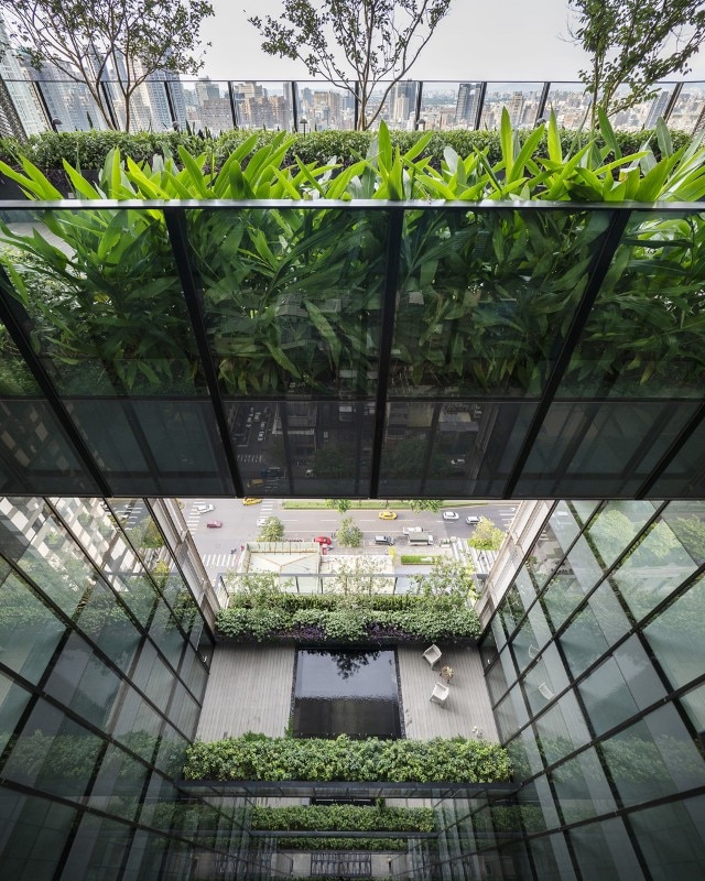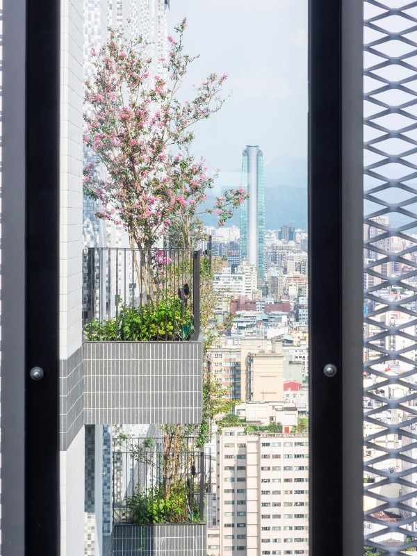 Singapore-based studio WOHA completed the skyscraper in Taiwan. The building includes trees on the balconies, plants on the facade and skygardens every five floors.