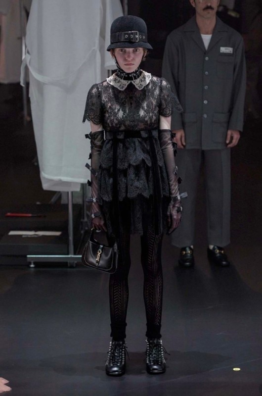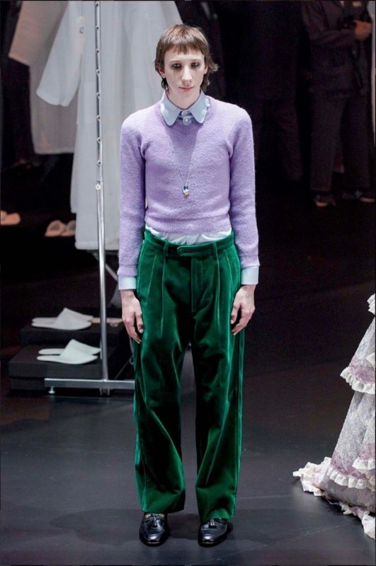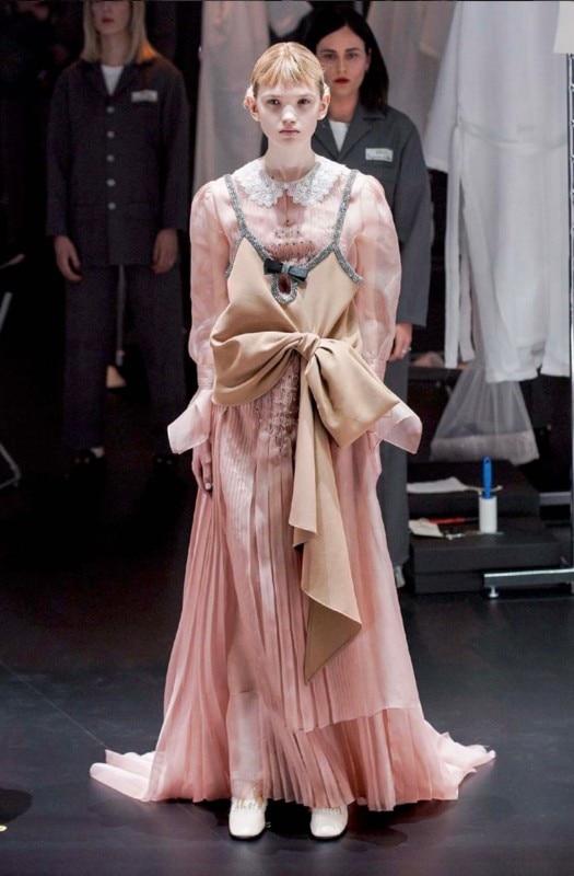 Vain and brave women walk on the catwalk with pride and confidence, wearing clothes that certainly cannot pass unnoticed. They look like they came out of a manga, with impressive hairstyles and noteworthy accessories, such as the handbag in the shape of a cake box, the crunchy "baguette bag" under the arm and large mirrors to please even the vainest ones. The dresses are decorated like cakes, rich pastel-coloured glazes, cream curls and layers of sponge cake are transformed into fabrics and embroideries.