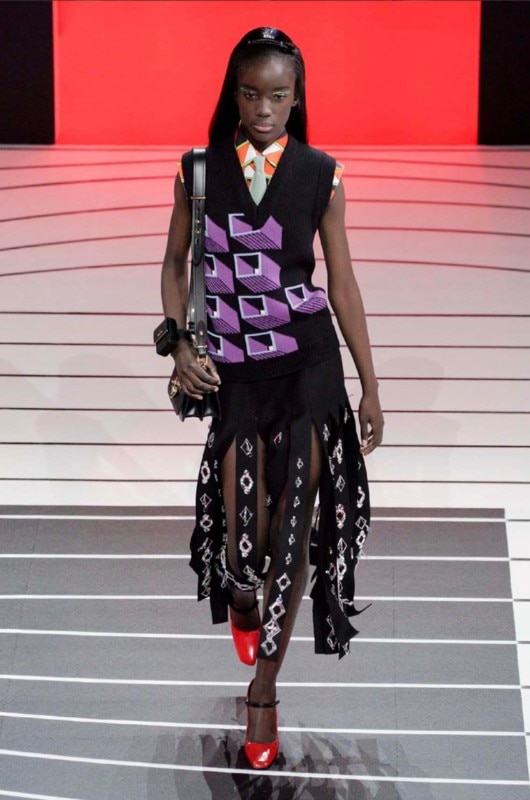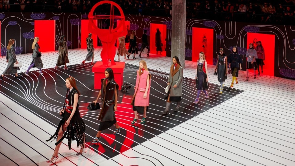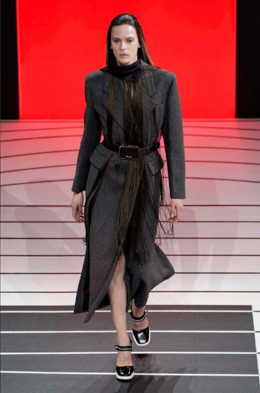 Miuccia Prada brings a pure and genuine femininity to this year’s MFW. The fashion house isn't lacking iconic pieces; the black nylon, the decorated coats, delicate transparencies, fringe skirts that uncover the legs at every step, the Linea Rossa shirts and the austere suits; they don't represent the armour, but the extension of a strong and courageous character. In such a glamourous way.
