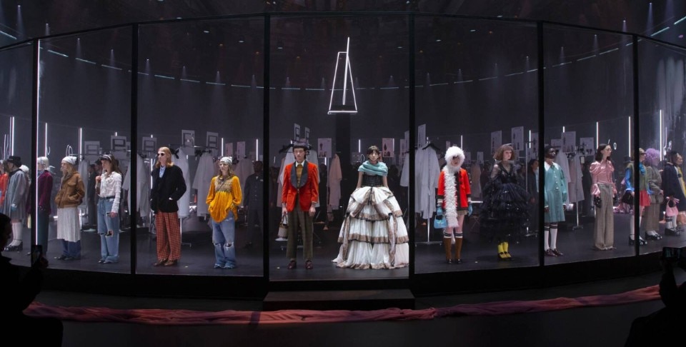 But from the very start of the fashion show, you understand that the main goal is to surprise: we can see the behind-the-scenes action of the hair and makeup teams defining the last details before the show begins; a tribute to the history, dedication and work that distinguish the brand's philosophy.