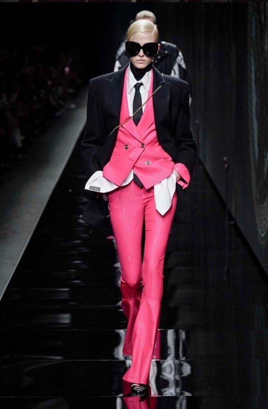 Versace "exhibits" equality and parity: "Who are the man and woman today? I chose to present the men’s and women’s collections together on the catwalk to emphasize how much their strength is equivalent" says Donatella Versace. For the first time, the fashion house makes men and women parade together. The garments are pure expression and take their distance from radical thinking, underlining the importance of free interpretation. Man or woman has no relevance, the emphasis is on the being, the focus is on feeling the dress without worrying about which faction to join.