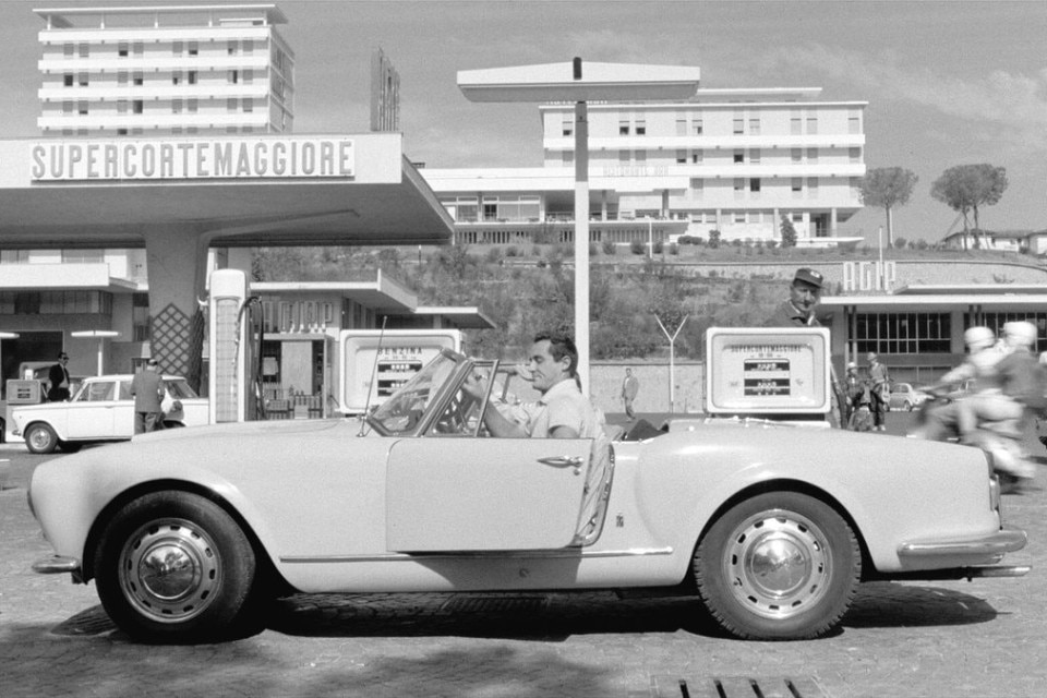 The four wheels simply run in the blood of the post-war roadsters, which in Italy – where they come from – where named as “spiders”. The name of the “spider cars” comes from a specific type of horse-drawn carriage used in the 1800s, that was called “spider” because of the contrast between its large wheels and its small body that made it look like the eight-legged insect. Despite its English origins, this name is mostly used in Italy, and it's such a pervasive term that in other countries it's used to refer to Italian open two-seat cars. Anywhere else, these cars are called roadsters of even spyders – but we're still talking about a kind of car that is both a status symbol and a dream, a desire for freedom, happiness (because you need it to be sunny outside to drive it), and the feeling of the wind through your hair. And that's right during the post-war euphoria of the '50s that spider cars became a point of reference. So, let's start our journey right there, in the '50s, with the Lancia Aurelia B24 designed by Pininfarina and featured in the movie Il Soprasso. Next to Vittorio Gassman and Jean-Louis Trintignant, this car is the co-star of Dino Risi's movie, and it symbolizes the Italian economic miracle as well as the wellbeing and freedom of movement and expression that characterized that period.