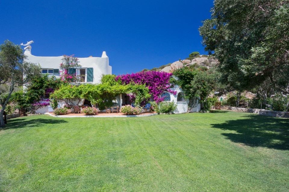 It is in this scenario that Ulivi Estate fits in, in Porto Rafael, a few minutes from Porto Cervo. Overlooking the sea, facing the national park of the Maddalena archipelago, the property consists of two large villas – a main one of about 430 square meters, built in 1969 by architect Michele Busiri Vici, and another one for guests. Surrounded by 3 hectares circa of land, which host generous outdoor spaces, the estate has also a direct access to the sea and a private water reserve, thanks to a 143-meter deep well.
