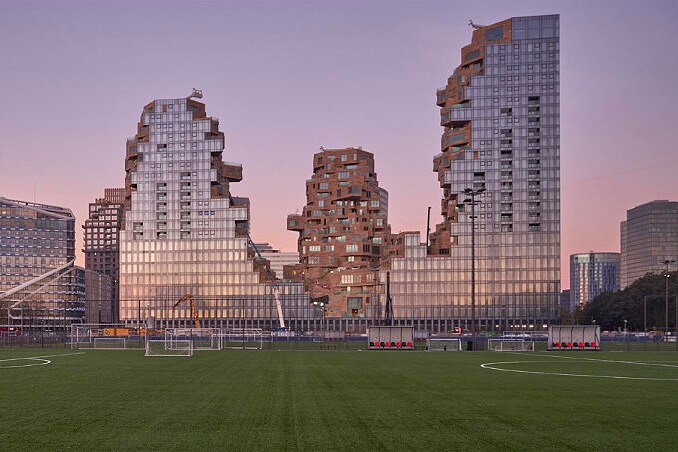 The project – with its stone terraces, bay-windows and balconies – brings also greenery to the district. The vegetation has been designed by the landscape architect Piet Oudolf, who focused on the possibility to have a year-round green appearance.