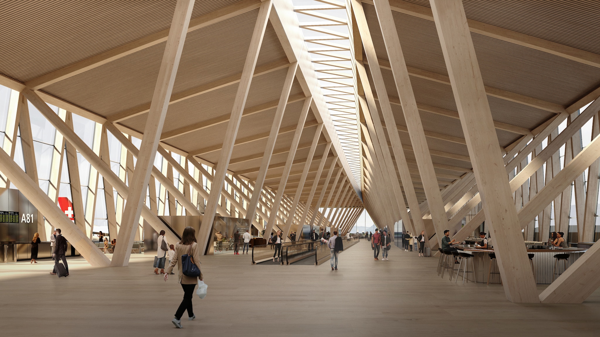 Bjarke Ingels Group showed its winning design for light-filled Zurich Airport’s “Dock A”.