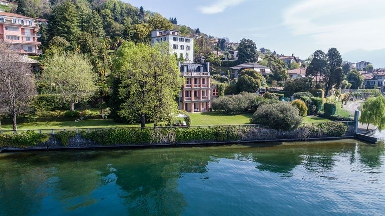 The property – now on sale for 7 million euros – on the side facing the street shows a massive wall surface with a single opening, a monumental door flanked by two granite columns. The part overlooking the lake, intimate and protected, is composed of three loggias with terracotta balustrades and is characterized by a sober classic style.