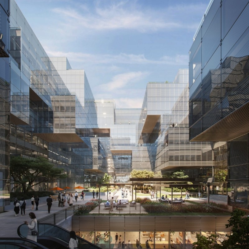 Indoor and outdoor workspaces will develop around a large courtyard space, a thing that will offer great layout flexibility, together with column-free offices that will make it easier for the company to change space size and desk placement to meet different needs.