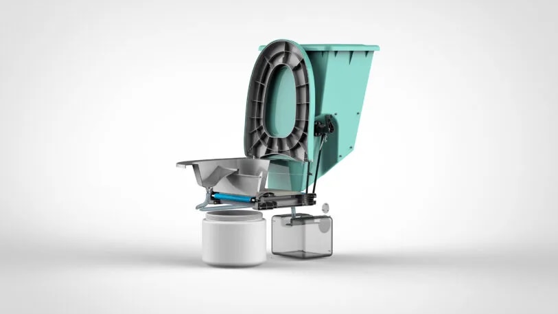 Sandi uses a mechanical flush which doesn’t require electricity, and a basic conveyor belt to move the solids away, which doesn’t require water. Furthermore, it has a divider inside the bowl that separates the waste streams so they can be used as fertilizers.