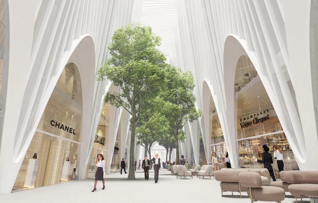 Located on Düsseldorf’s Königsallee, the 375,000-square-foot development named Calatrava Boulevard includes luxury retail, upmarket restaurant spaces, and workplaces. The first two floors, with a total area of 160,000 square feet, will host luxury restaurants and retail spaces, while the upper floors have 236,000 square feet of office space.