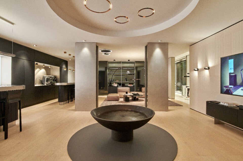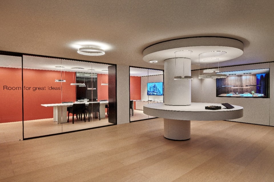 The showroom allows visitors to interact with the products and be personally advised by experts. There is also a “light lab” where clients can explore the quality of light in rooms and choose their own lighting atmosphere.