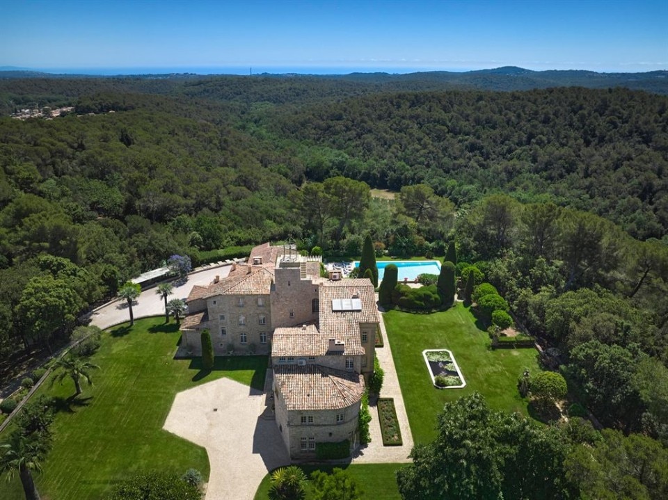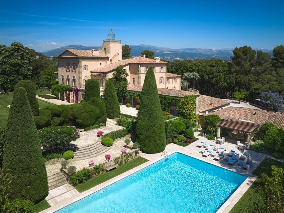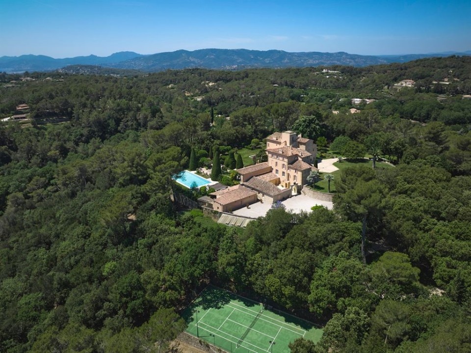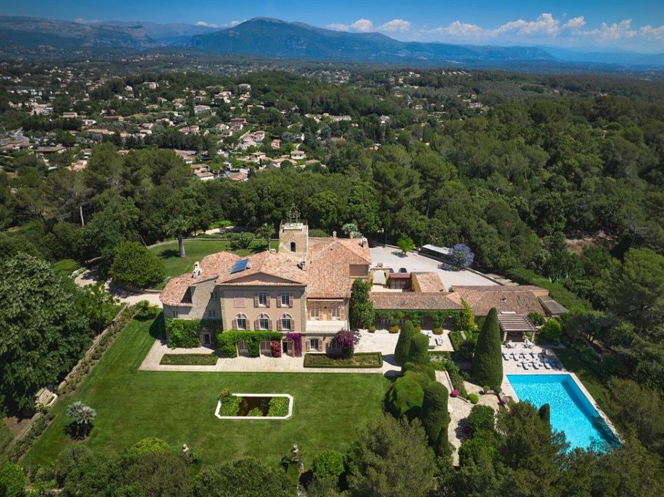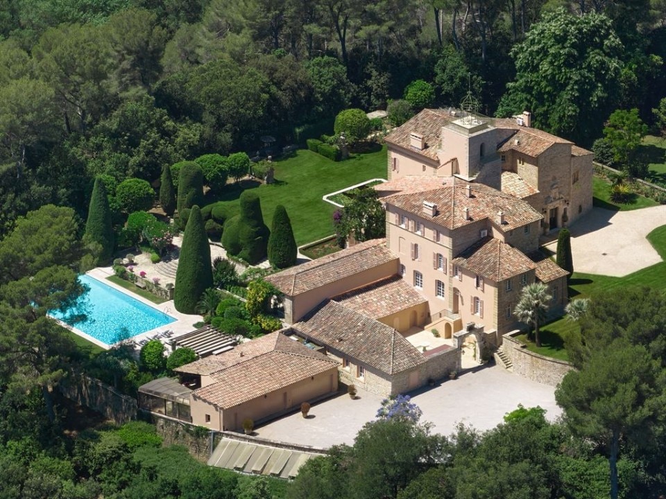 Known as Domaine de Beaumont, the property built in 1920 and designed by Jacques Couelle, occupies almost 4 acres and consists of several buildings. The main building has an area of 12,500 square feet and in addition to the different services has at least 9 bedrooms, a sumptuous marble entrance with a big staircase, a formal dining room, a breakfast room, a large living area, and an entertainment room. There is also a house for domestic staff, a wine cellar, a 65-foot marble heated swimming pool, an indoor pool, waterfalls and ornamental pools, olive trees, flower beds, and a tennis court.