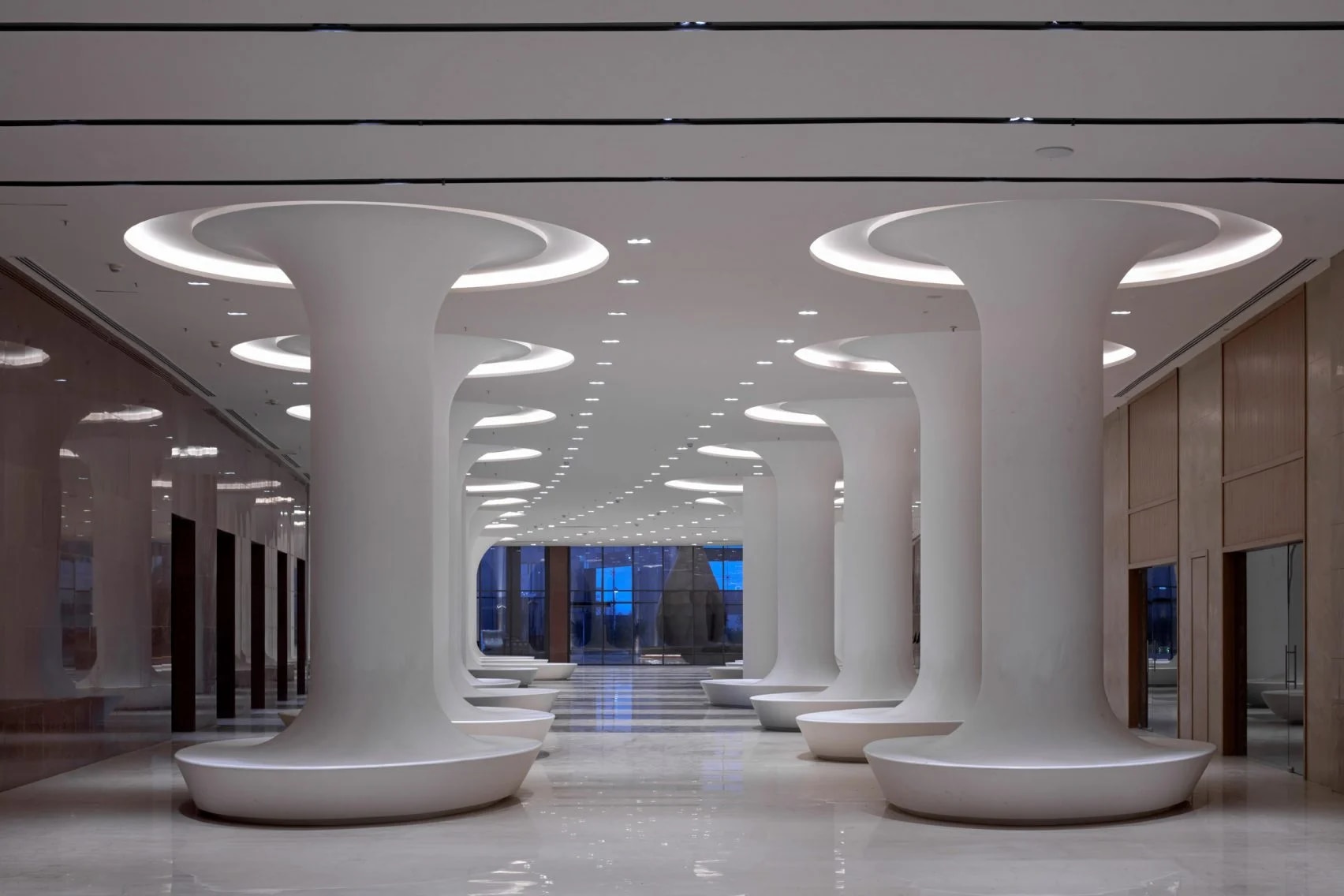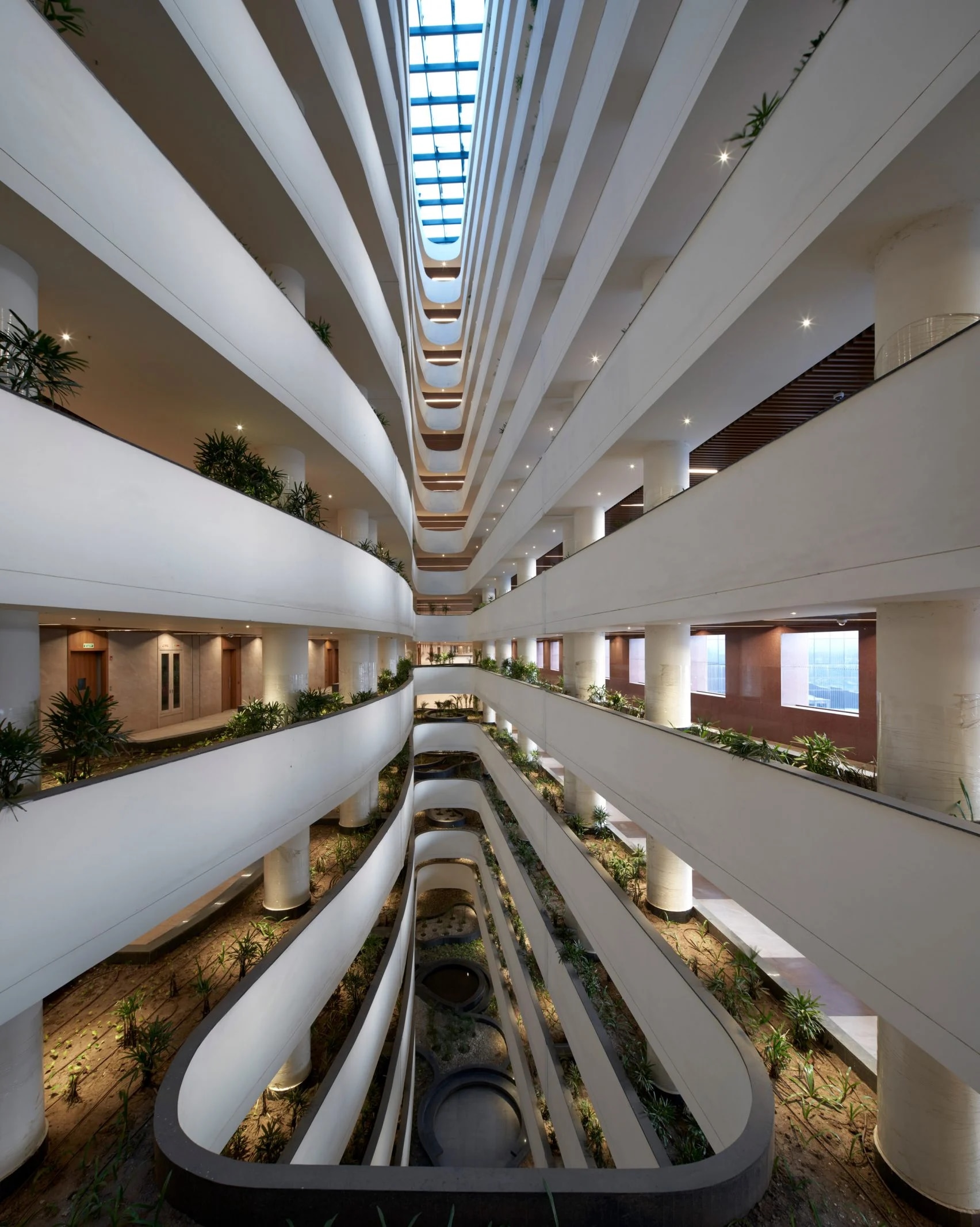 The building houses the world’s largest community of diamond traders and consists of nine 15-story wings arranged around a central corridor, oriented north-south to reduce the impact of the harsh western sun and hosting 4,717 completely day-lit for 67,000 diamond professionals – including cutters and polishers. Set between the wings are courtyards largely shaded by the building itself and are intended to be used as informal gathering places.
