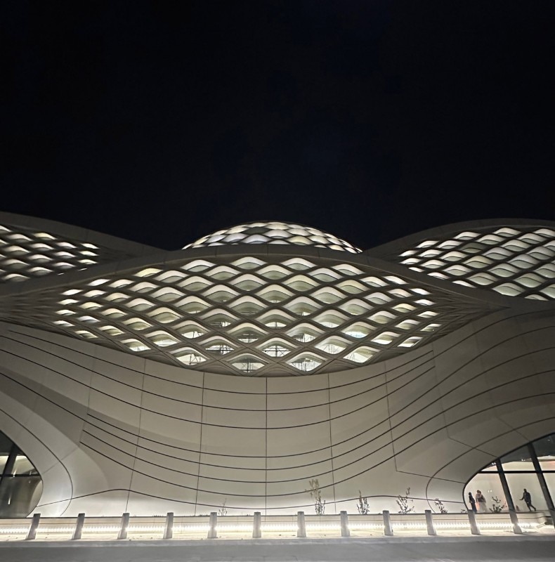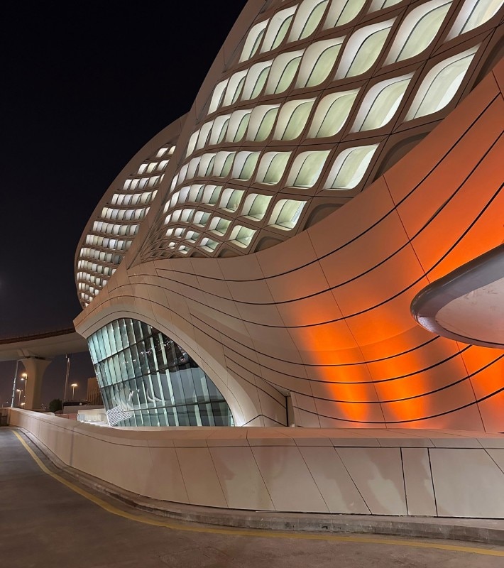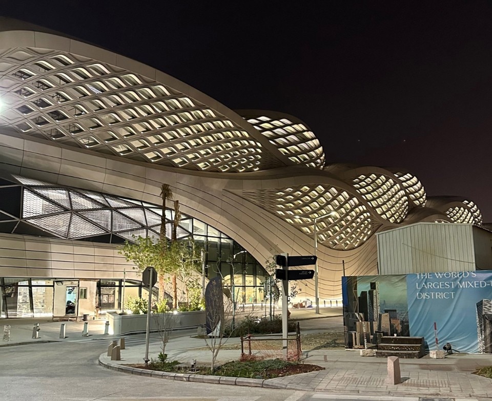 The 45,000-square-meter project – designed by Zaha Hadid and Patrik Schumacher – won a competition held in 2013, and will be one of the largest in the network, serving as an interchange between three different lines. The King Abdullah Financial District is one of the fourteen giga-projects under development in Saudi Arabia, comprising sixty-one buildings including towers and skyscrapers.