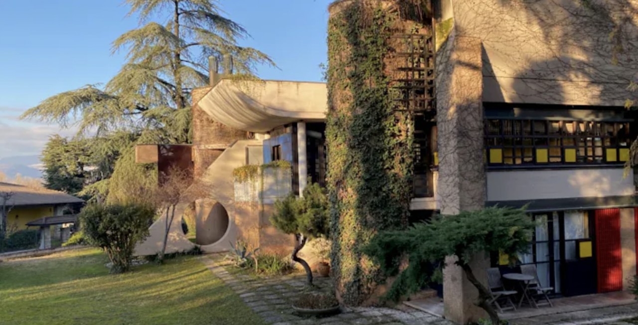 The Villa, approximately 500 square meters in size and surrounded by a park of about 2000 square meters, was completed in 1976. Commissioned by Claudio Caffetto, an entrepreneur but also an artist, painter, and sculptor, to the architect Fausto Bontempi, the villa was conceived from the outset with the idea of creating a museum-like home. Soon after, Caffetto established the Caffetto Art Editions, associating with recognized artists. More than just a house, the Villa presents itself as a modern sculpture, a work of art conceived as a series of autonomous artistic elements later interconnected and harmonized as a whole. Built to adapt to the natural slope of the terrain, it unfolds through a succession of terraces with flower beds, hanging gardens, and climbing plants, blending with the landscape. Dynamic and centrifugal force form the substantial basis of this house.