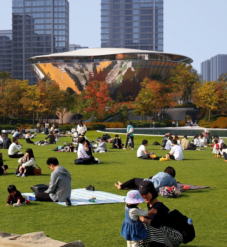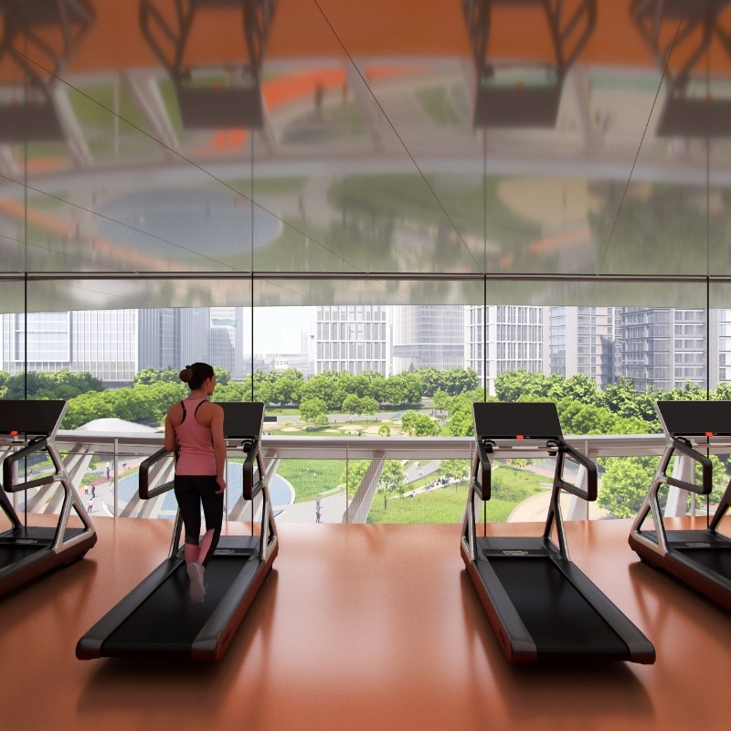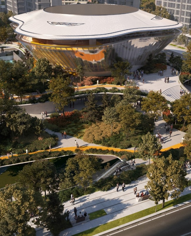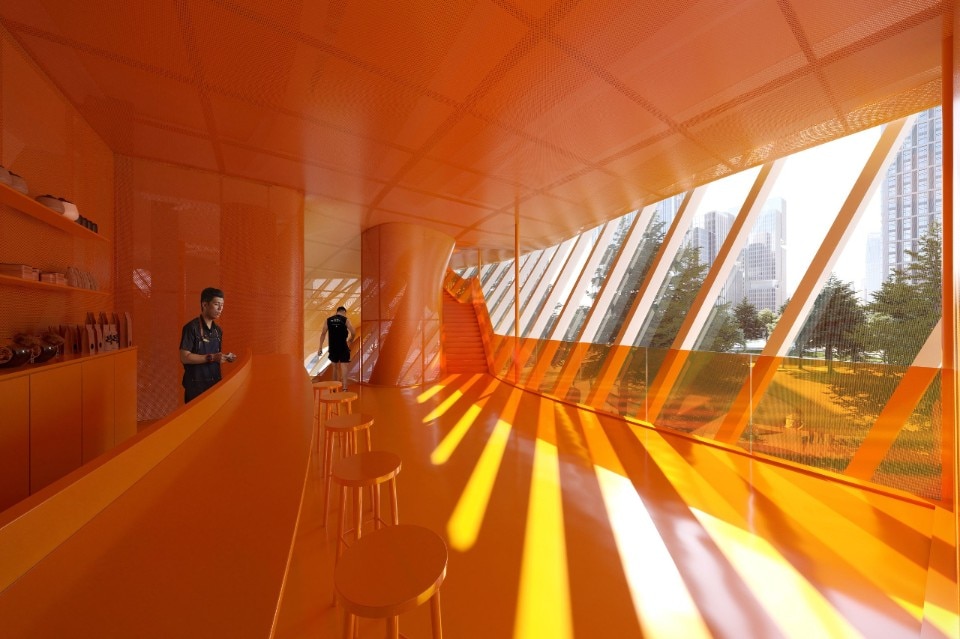 The facades will be permeable, to connect sports to the community and vice versa, as well as the interior and exterior environments. In line with this vision, an indoor tennis court will be connected to an underground retail street and the subway. A circular running track will connect the building to the park, along with outdoor courts, terraced squares, and observation decks that will offer high-quality spaces for relaxation and leisure. The project broke ground in March and is expected to be completed in 2025.