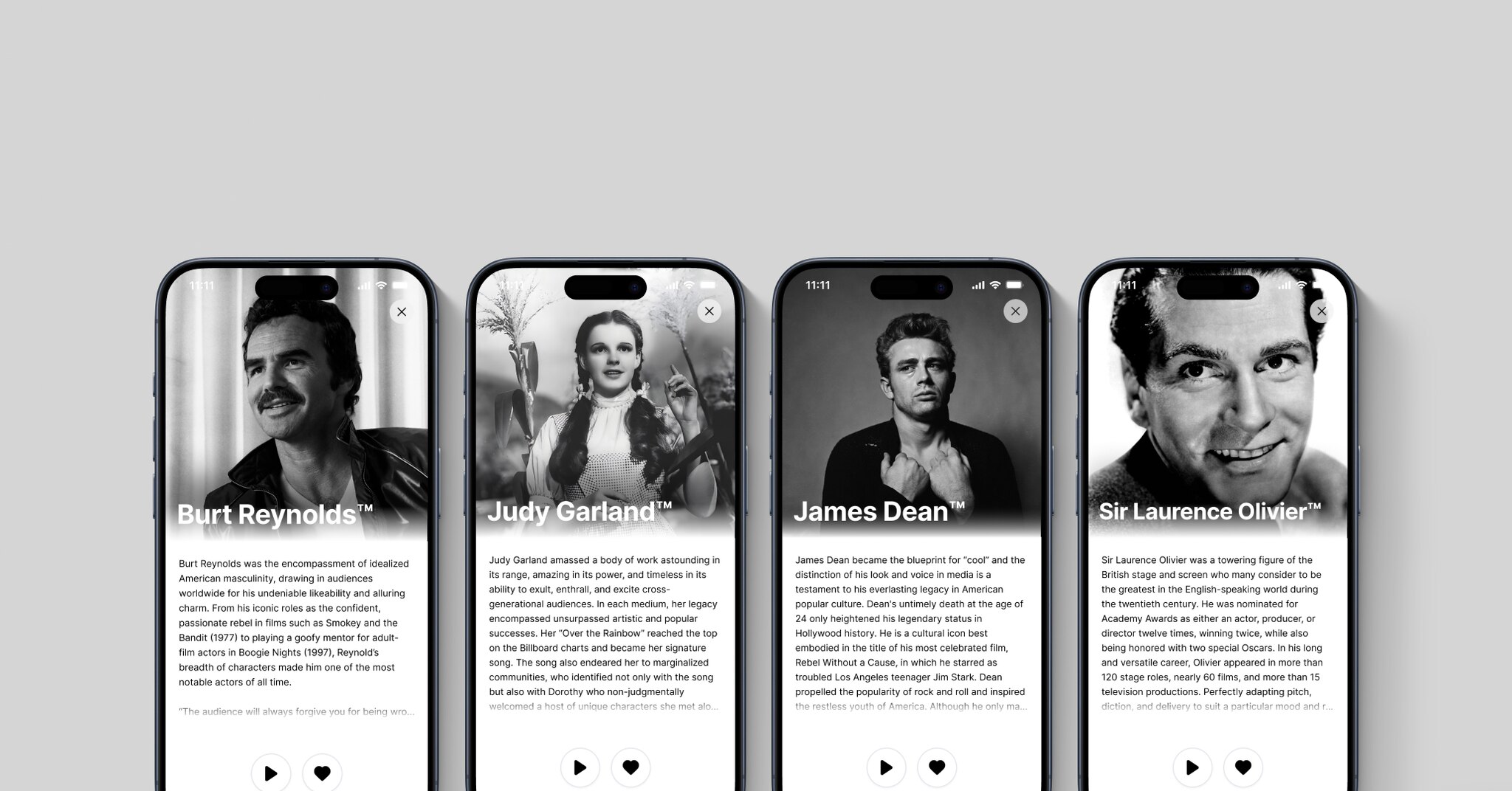 The estates of James Dean, Judy Garland, Laurence Olivier, and Burt Reynolds have all granted Eleven Labs a presumably well-paid license to exhume the voices of the four dead artists.