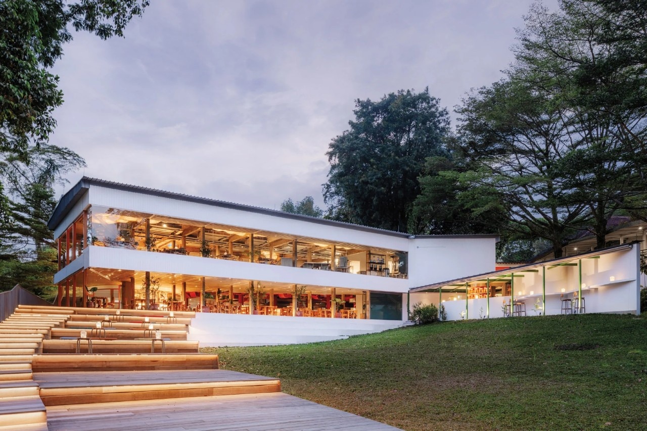 In Dempsey Hill, a prestigious area in Singapore situated on a green hill northwest of the city center, OMA created a new circular campus centered around dining by restoring an old military barracks from the British colonial era and a two-story modernist building added in 1971, in the post-independence period of the young city-state. No longer serving a military function, the complex was converted into a sports club for civil service employees until 1975, and from then on was only sporadically occupied until it was acquired by Indonesian entrepreneur Ronald Akili—the owner of the Potato Head lifestyle brand, with which OMA has collaborated for decades, and who indeed commissioned the firm to renovate it.