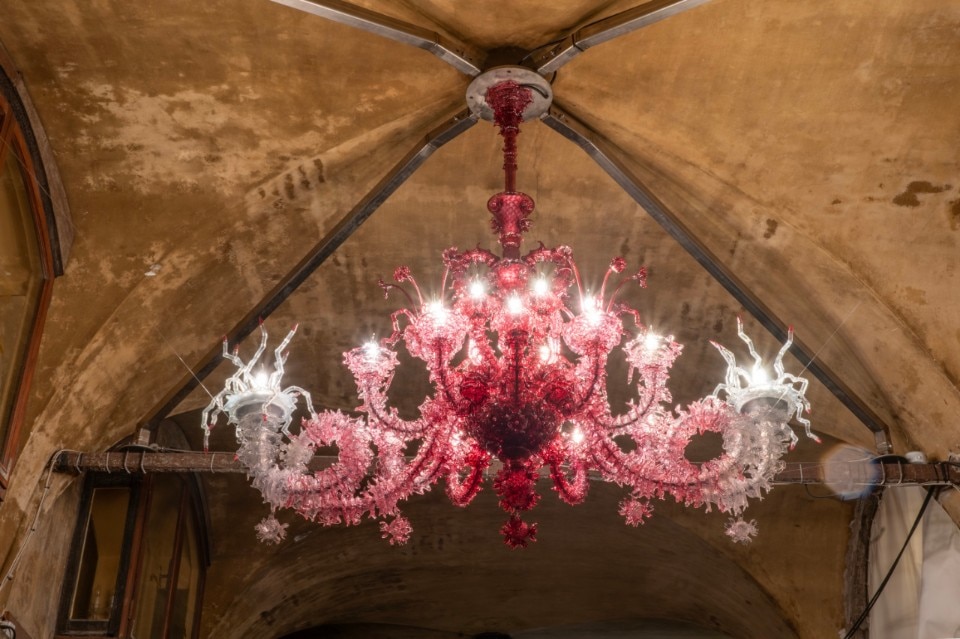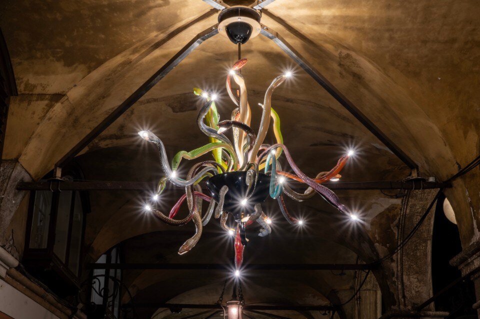 The fusion of contemporary creativity and Murano craftsmanship has given life to eleven artist-designed chandeliers, which will light up throughout the Christmas season and beyond, until March 4, 2025, under the arches of the Procuratie Vecchie in St. Mark's Square. This open-air exhibition is a gift to the Venetian community and the thousands of visitors who pass through the arcade daily. It is an urban installation that highlights top-tier design, made possible by collaborations with the most prestigious Murano glass furnaces and their master artisans.