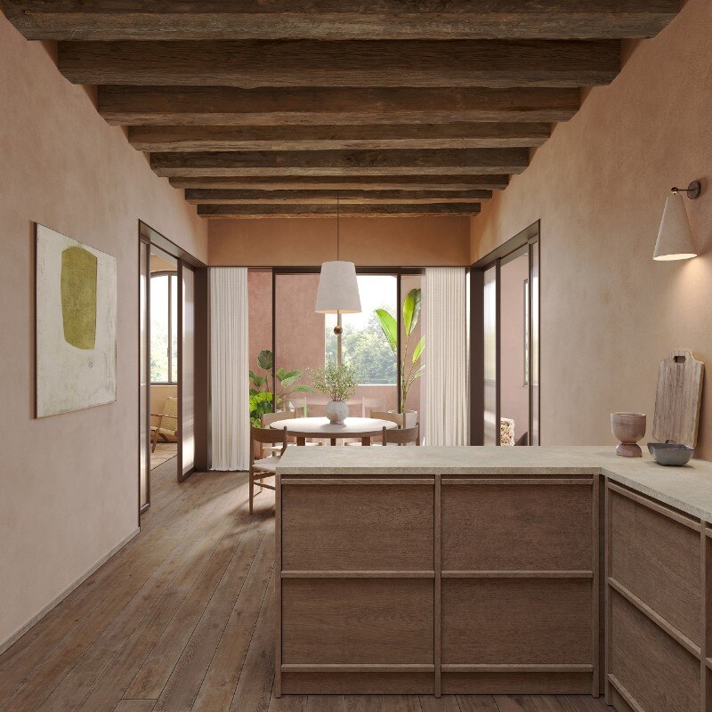 In the interiors, natural, transpiring materials with soft, earthy colours will give the rooms a warm, enveloping character enriched by the irregularities and imperfections of the historical stratification. Common spaces for meeting and socialising, such as a small restaurant and retail shops, will foster community life in the new neighbourhood.