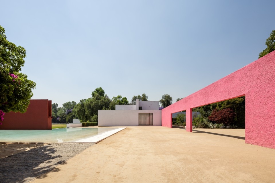 Forty kilometres north of Mexico City, an expanse of architecture defies the colours of the surrounding vegetation. La Cuadra San Cristóbal is one of the masterpieces of the Mexican architect Luis Barragán, who, inspired by the ranch typology, gave further proof of his profound compositional and chromatic sensitivity with this work. The volumes, which are easy to read, create a space that alternates between enclosed and open, and includes a house, stables, a monumental fountain, a barn, a paddock and a large grazing area, covering almost three hectares.