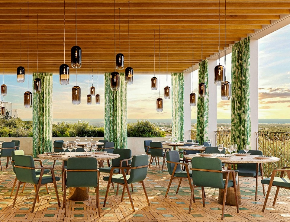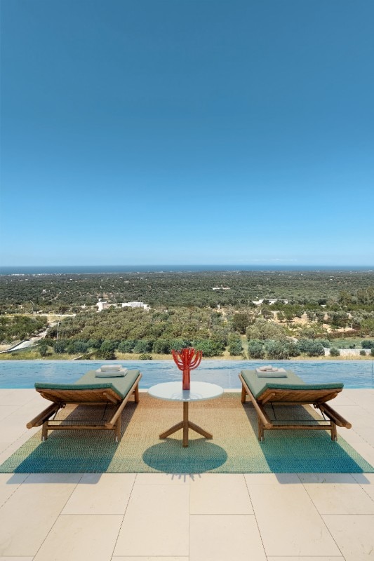 The property will feature 28 rooms and suites, two restaurants under the direction of Michelin-starred chef Andrea Berton, three swimming pools – including a panoramic infinity pool – a rooftop bar, a spa, and a fitness centre, with an interior space of over 6,000 square meters that retains its original character. The 16,000-square-meter outdoor area, designed by Belgian landscape architect Erik Dhont, aspires to make the distinctive Mediterranean landscape, dotted with olive trees and shrubs, a central feature of Vista Ostuni, integrating it seamlessly with spaces dedicated to wellness and relaxation.