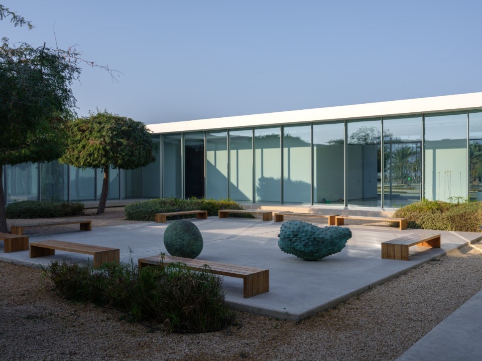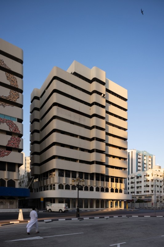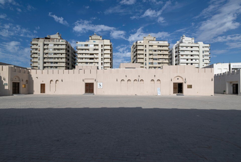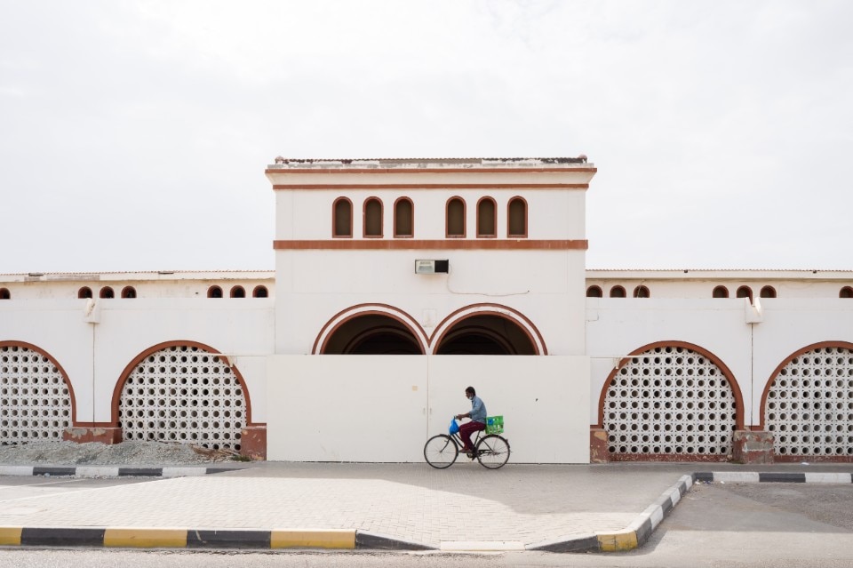 Near the centre, a modernist urban landscape becomes the setting for the exhibitions along the road which, extending from the Corniche to Rolla Square Park, bisects the historic centre: 17 buildings designed by the Spanish studio Typsa (1977) to house expats' accommodation, offices and banks, among which the partially demolished and rebuilt Al Hisn Fort (1820) timidly stands out . The centrepiece is the Bank Street Building, a building symbolising the rise of the global market in Sharjah in the 1970s, acquired by the Sharjah Art Foundation and now included in a huge urban regeneration process.