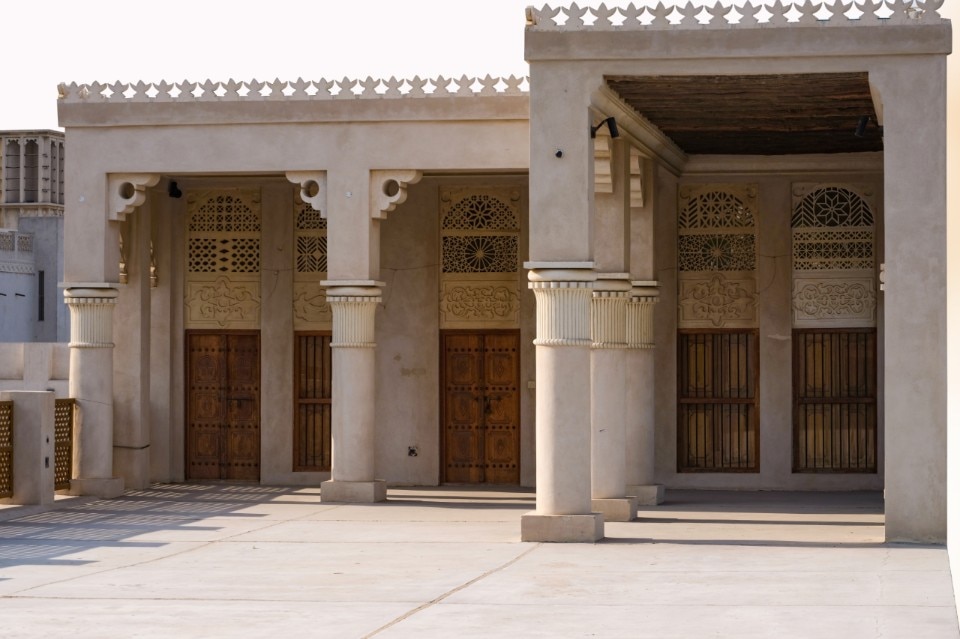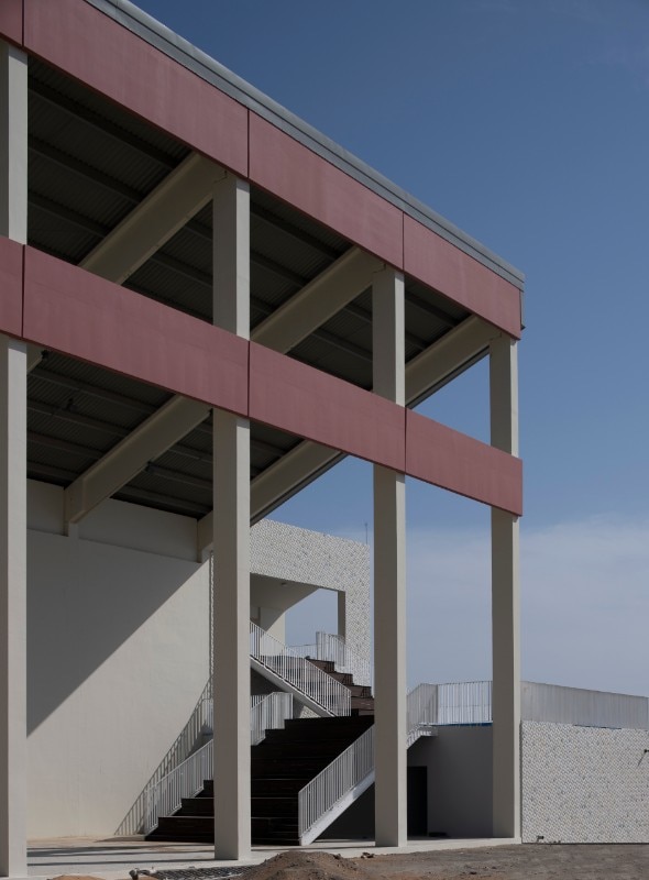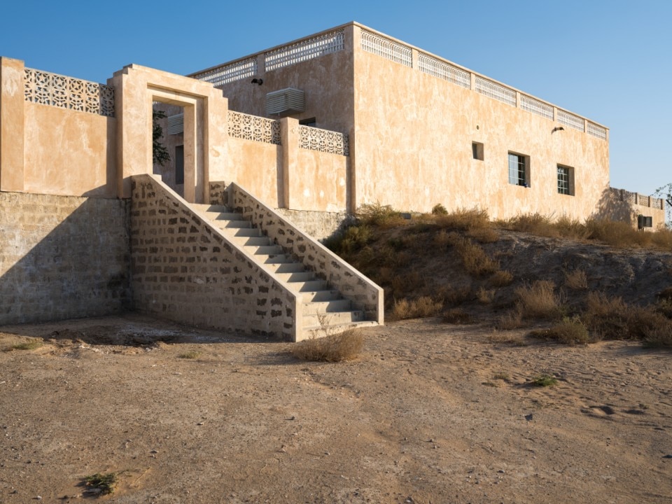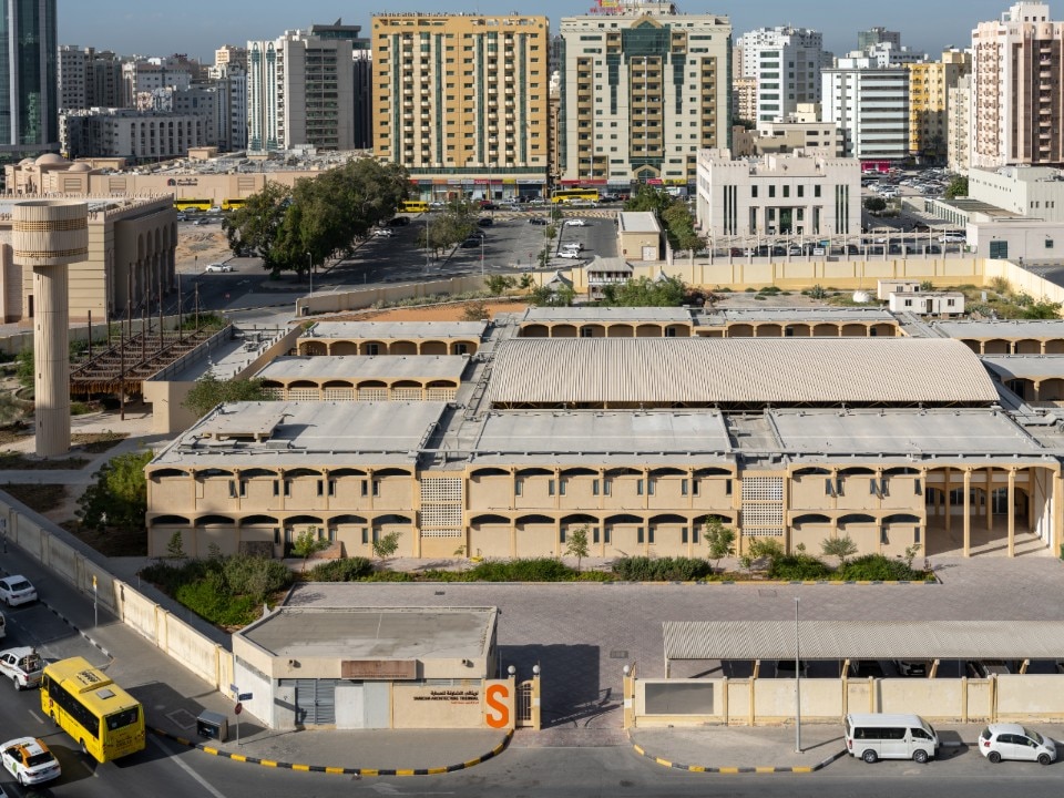 In the district of Al Manakh, the former Al-Qasimiyah boys' primary schools (1971), since 2018 the headquarters of the Triennale, is the archetype of a school building typology consolidated throughout the Emirate, characterised by earthy-tone volumes with perforated screens and the modular repetition of a reinforced concrete framed structure that assembles teaching units alternated with covered paths and open-air courtyards.