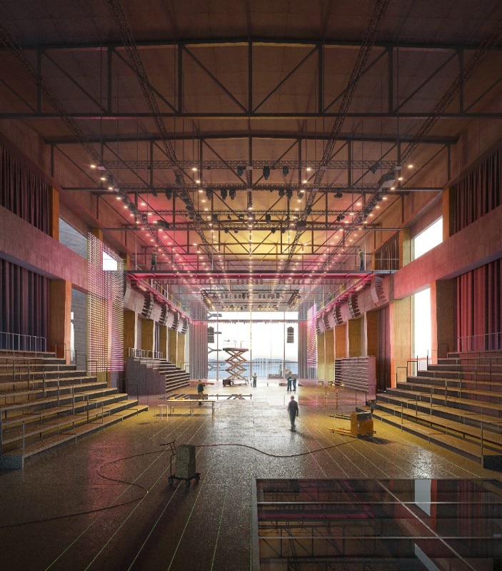 The monolithic complex with a Brutalist feel, dominated by three iconic smokestacks, stands out with disruptive imposing grandeur in the urban landscape: the aim of the project was to preserve the strongly characterised identity of the industrial site, promoting its greater usability in relation to future destinations. “Tres Xemeneies represents an icon of Catalonia's industrial heritage that we intend to preserve and enhance”, says Guido Hartray, founding partner of Marvel. The project preserves the existing structure, modified only by the insertion of transversal cuts that interconnect the building with the surrounding environment, and introduces a new construction that connects the interior of the former turbine hall with the outdoor space, following the natural boundaries of sea and mountain.
