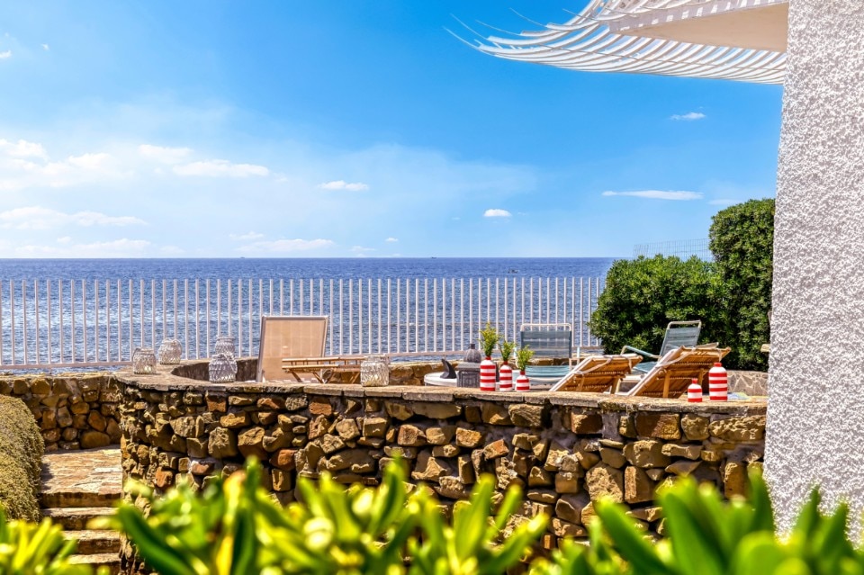 Amidst narrows and expansions, the outdoor garden softly envelops the building, leading towards the sea, through a private access.