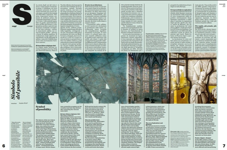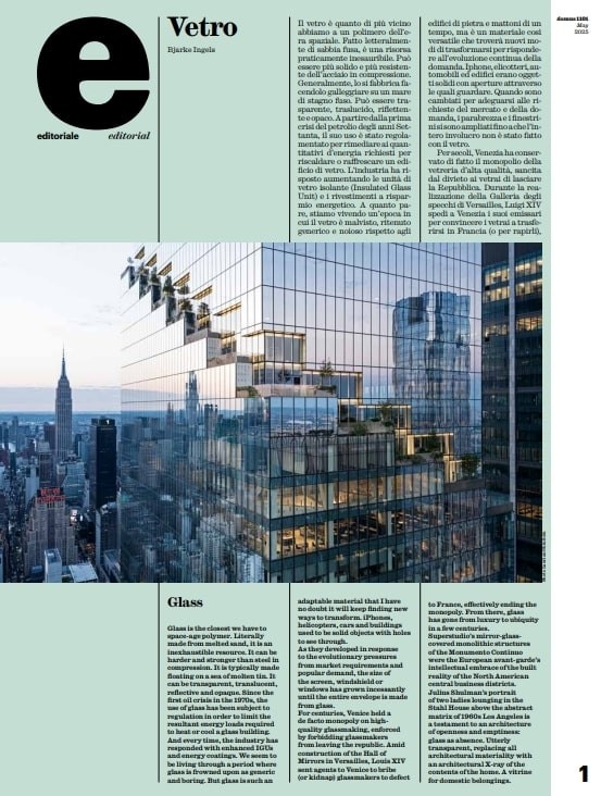 This edition of Domus thus unfolds as a comprehensive exploration of glass, a material that continues to inspire and push the boundaries of human creativity, shaping our built environment and our perception of space.