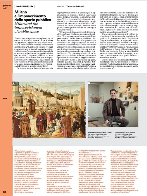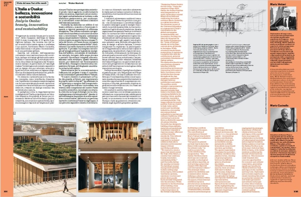 The Diary section opens with "The Fact of the Month," this time curated by Editorial Director Walter Mariotti. The destination is Osaka, where the Italian Pavilion for Expo 2025 has been inaugurated. The visionary architecture of Mario Cucinella Architects stands as a celebration of a nation that masterfully blends beauty, innovation, and sustainability, a narrative brought to life through the insightful guidance of General Commissioner Mario Vattani. The pavilion becomes a refined showcase of Italian talent, a cultural bridge ideally connecting Italy and Japan.